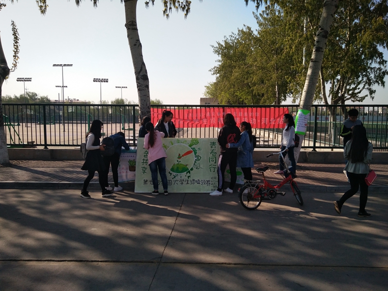 活动前期运用QQ微信等渠道进行线上宣传,引起同学们积极参与的兴趣。在活动当天,向同学们介绍活动参与方式,免费领取多肉、满天星种子,现场活动进展有序。