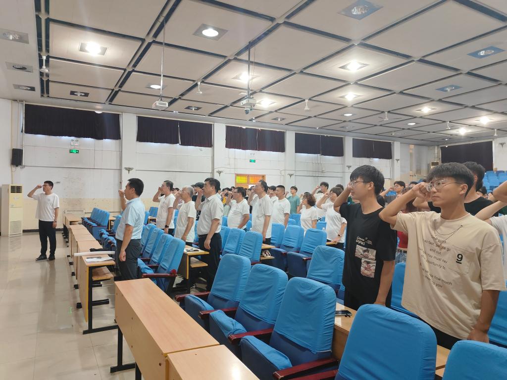 全体师生党员齐唱国歌,一起面对党旗庄严宣誓。誓言铿锵、初心如磐。