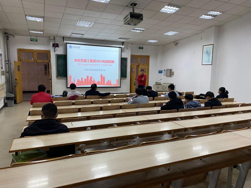 2021年10月23日下午DB旗舰在昌黎校区B103教室举办了新宏昌重工集团专场招聘会,公司组织相关同学参加招聘活动。